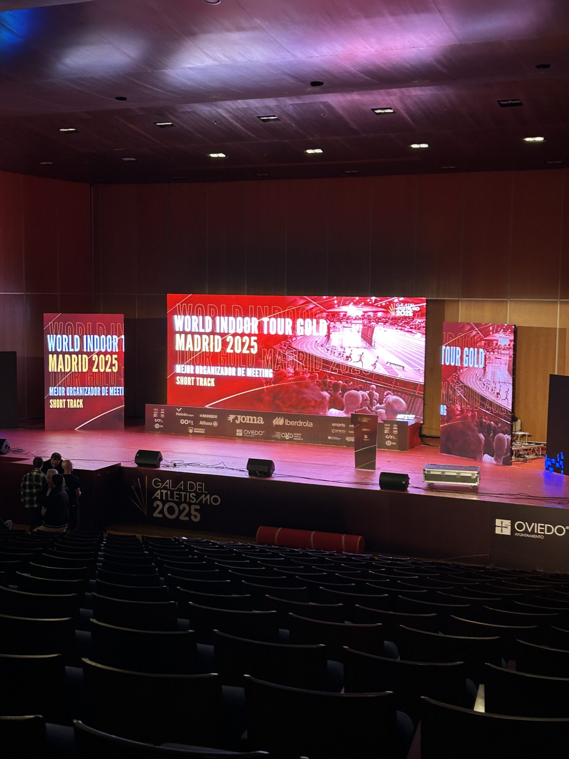 Esta vez nos encargamos de la producción completa de la Gala Anual del Atletismo Español en el Auditorio de Oviedo: pantallas, sonido, fabricación de materiales, producción del evento y dirección técnica.